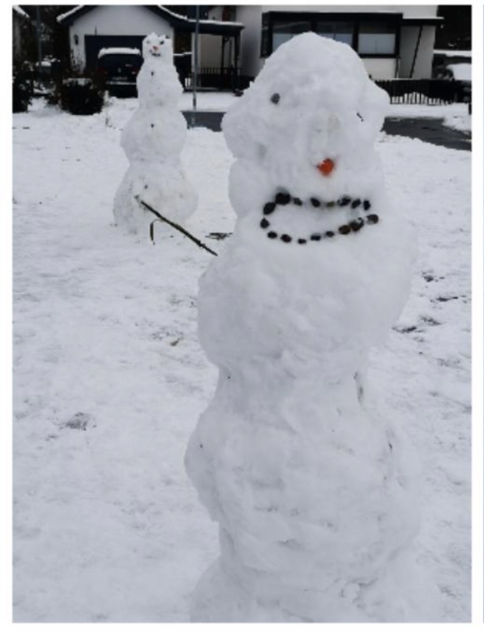 Am Donnerstag und Freitag zog es die gesamte Schule für jeweils eine Schulstunde hinaus in den Schnee. Gemeinsam türmten und formten die Kinder den Schnee. Mit Karotten, Schals und Kreativität bauten sie einzigartige Schneemänner auf dem Schulhof.